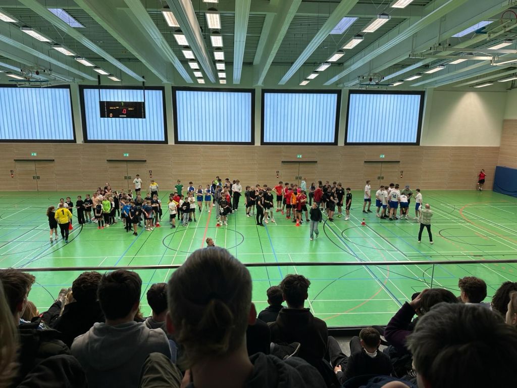 Am 9.2. fand das Finale statt, zum ersten mal während der 3 und 4 Stunde, also vor den Augen der gesamten Schulgemeinschaft. Die Ränge der Schloßwallhalle waren bis auf den letzten Platz gefüllt, durch lautes Getrommel wurde das anfeuern der Mannschaften unterstützt. Wie auch jedes Jahr erhielten die Gewinner*innen das heißbegehrte Sieger-Shirt.